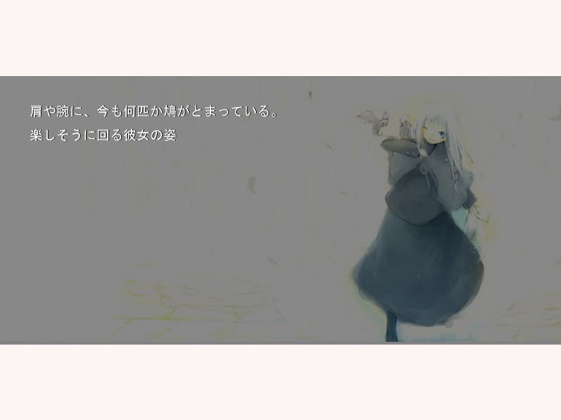 切なく悲しく、けれど温かい物語。ビジュアルが本当に綺麗で、合間合間に入る一枚絵が本当に綺麗。シナリオも文章や最後への運び方も上手い。音楽もオルゴールを使ったBGMと無音と使い分けがされていてより物語に引き込まれていく。